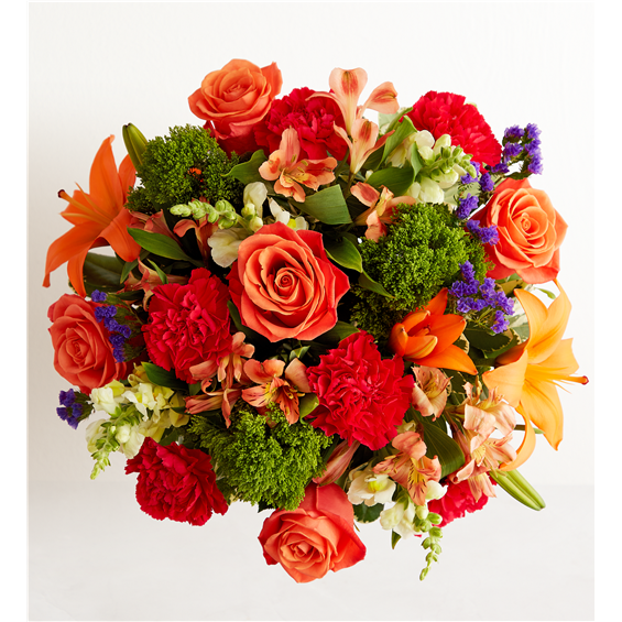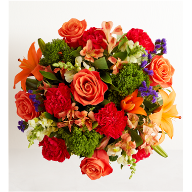 Putting a bright start in somebody’s day starts with a beautiful gift. Our delightfully vibrant bouquet is filled with a medley of blooms in cheerful pops of orange, hot pink and yellow, with plenty of lush greenery mixed in. Designed by the talented Breanna Cartwright from Fresh Ideas Flowers Company in Modesto, California, it’s the perfect pick-me-up surprise, whatever the sentiment.